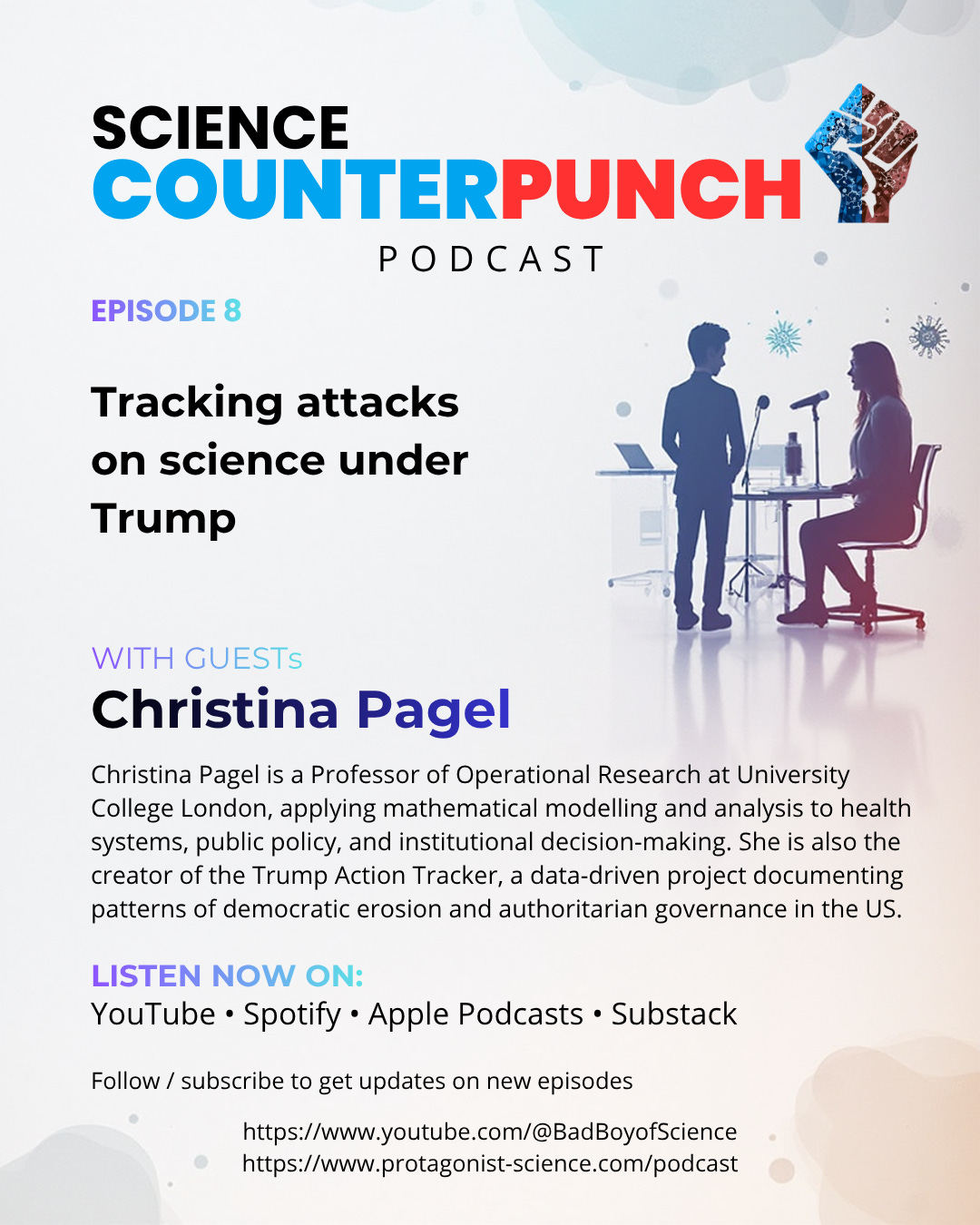 This week on Science Counterpunch, we’re joined by Professor Christina Pagel, Professor of Operational Research at UCL and creator of the Trump Action Tracker, a data‑driven record of nearly 3,000 actions documenting the attacks on democratic and scientific institutions in the U.S.